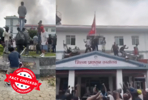 নেপালে জেন জি আন্দোলনের পর থেকেই সামাজিক মাধ্যমে প্রাসঙ্গিক ও অপ্রাসঙ্গিক পোস্টের বন্যা নেমে এসেছে। সম্প্রতি একটি ভিডিও আমাদের নজরে এসেছে, যেখানে সাত-আটজন যুবককে একটি মন্দিরসদৃশ চূড়ার মতো স্থাপত্যের উপর উঠে নেপালের পতাকা উড়াতে এবং চূড়ার উপর স্থাপিত কাঠামোটি ভাঙার চেষ্টা করতে দেখা যাচ্ছে। ভিডিওটি শেয়ার করে দাবি করা হচ্ছে, এটি একটি মন্দির এবং জেন […]