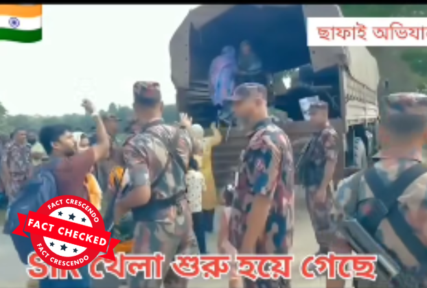 পশ্চিমবঙ্গে অবৈধ বাংলাদেশি অনুপ্রবেশকারীদের বাসস্থান এবং তাদের ভোটার অধিকার নিয়ে মাঝে মাঝে রাজনীতিতে আলোচনা শুরু হয়ে থাকে। ৪ নভেম্বর থেকে রাজ্যে ভোটার তালিকা সংশোধনের বিশেষ প্রক্রিয়া (এসআইআর) শুরু হয়েছে। তার পর থেকেই সামাজিক মাধ্যমে একটি ভিডিও ছড়িয়ে পড়েছে, যেখানে বিশাল সংখ্যক মানুষের ভিড় নদীর ধারে নৌকা ধরার হিড়িক দেখানো হয়েছে। ভিডিওটি শেয়ার করে দাবি করা […]