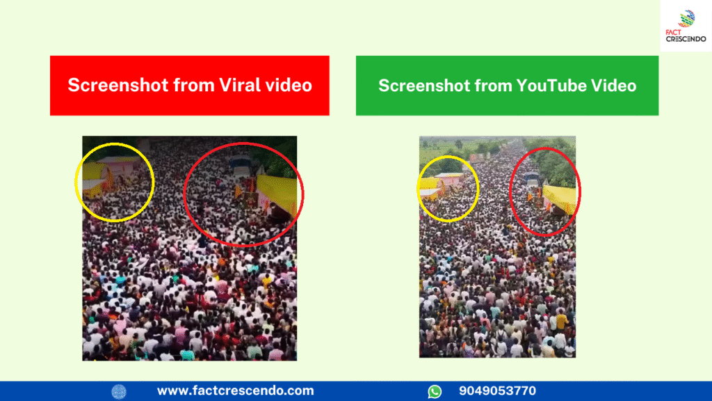 ভাইরাল ক্লিপ ও ইউটিউব ভিডিও থেকে নেওয়া স্ক্রিনশটগুলোর মধ্যে একটি তুলনামুলক ফ্রেম নিচে দেওয়া হল যা থেকে স্পষ্ট হয় যে ভাইরাল ভিডিওটি পুরোনো এবং আরাবল্লি পর্বত প্রতিবাদের সঙ্গে সম্পর্কিত নয়।