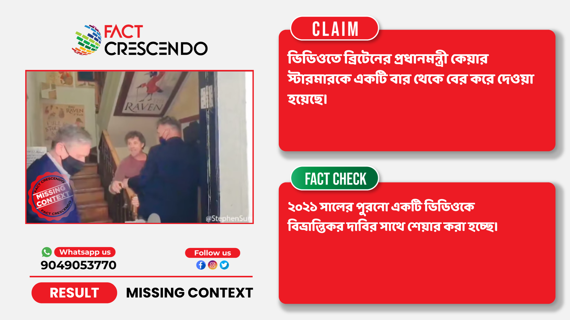 সম্প্রতি সামাজিক যোগাযোগ মাধ্যমে একটি ভিডিও শেয়ার করে দাবি করা হচ্ছে যেন একজন ব্যক্তি ব্রিটেনে প্রধানমন্ত্রী কেয়ার স্টারমারের মুখোমুখি হয়ে তাকে তার পাব থেকে চলে যেতে বলছেন এবং অভিযোগ করছেন যে স্টারমার তার কাজ ঠিকভাবে করছেন না। ভাইরাল এই ভিডিওর ক্যাপশনে লেখা আছে, “এটা কি উচিত। তার গায়ে তুই গরম চা ঢেলে দিলি।”