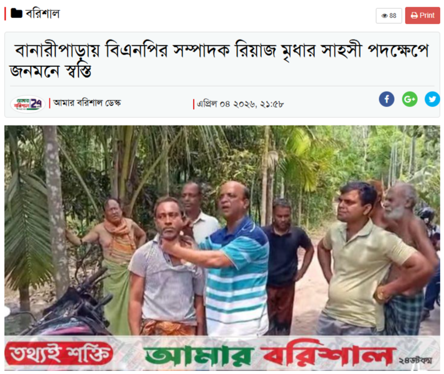 এই দাবির সত্যতা যাচাই করতে ভিডিওর কিছু ফ্রেম গুগলে রিভার্স ইমেজ সার্চ করা হয়। ফলস্বরূপ, এই ভিডিওকে কেন্দ্র করে বাংলাদেশি সংবাদ প্রতিবেদন পাওয়া যায়। প্রতিবেদন অনুযায়ী, মারধরের শিকার ব্যক্তির নাম মোঃ মিন্টু এবং মারধরকারী ব্যক্তি রিয়াজ মৃধা। রিয়াজ মৃধা বরিশালের বানারীপাড়া উপজেলা বিএনপির সাধারণ সম্পাদক। বানারীপাড়া সদর ইউনিয়নের রাজ্জাকপুর এলাকার বাসিন্দা মো. মিন্টুর বিরুদ্ধে দীর্ঘদিন ধরেই মাদক বিক্রির অভিযোগ রয়েছে। ৪ এপ্রিল তাকে মাদকসহ হাতেনাতে ধরে বিএনপি নেতা এবং সেখানেই তাকে মারধর শুরু করেন। ঘটনাস্থলেই মিন্টুকে কঠোরভাবে সতর্ক করা হয় এবং তার কাছ থেকে ভবিষ্যতে মাদক ব্যবসার সঙ্গে জড়িত না থাকার অঙ্গীকার নেওয়া হয়। শুধু তাই নয় তাকে বানারীপাড়া এলাকা ত্যাগ করার নির্দেশও দেওয়া হয়।
